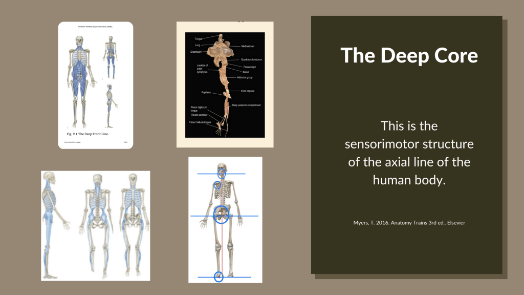 Biomechanical enlightenment is a form of perceptual shift. It is built upon a sensory motor metastability using the postural system. The postural system is located on the axial line of the body and is a single myofascial continuity from tongue to toe. This is called the deep core and it is easy to relate to.