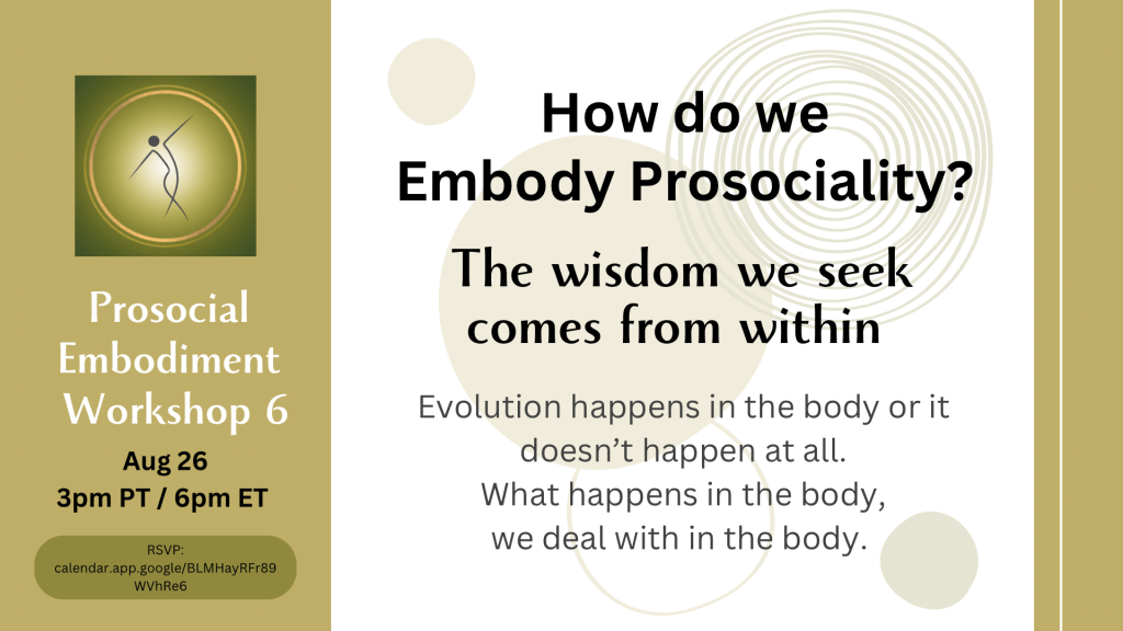 Evolution happens in the body and at Prosocial Embodiment we deal with it in the body.