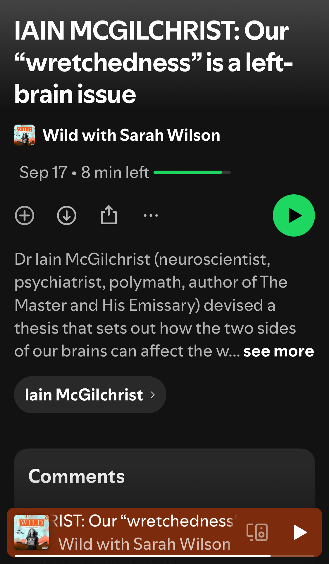But he is also being quite vulnerable and sincere. he is arguing for a profound shift in our inner life but he defines this as thinking. The idea that it is embodied on a very intimate and fundamental, even sexual level is difficult for him to accept. This denial that we see in McGilchrist himself is really only very good evidence for his theory, because the right hemispheric awareness he explains is atrophied in us includes our interoceptive sensory motor system. The right hemisphere is our animal intelligence. McGilchrist has a marvelously profound grasp of the truth as an intellectual. We feel it when we hear him talk but there is a single thin membrane he cannot pass through and that is the membrane of action and of self awareness. He would say that it is the corpus callosum but functionally speaking we know by now that it is embodiment.